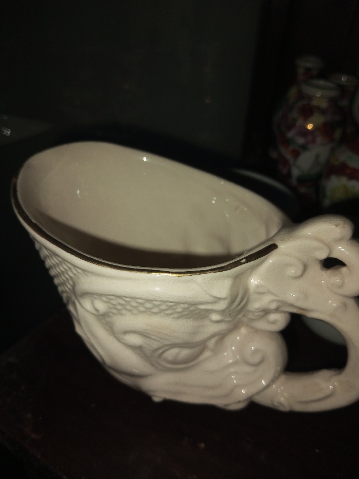 - "A ceramic cup with a dragon's head design for the handle sits on a dark surface" by FM-QltWy2, licensed under CC BY 4.0