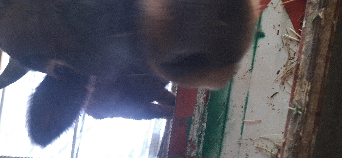 - "A close-up, angled shot reveals the face and ear of a dark-colored animal, likely a cow, pressed against a weathered wooden structure" by FM-0zE9q2, licensed under CC BY 4.0