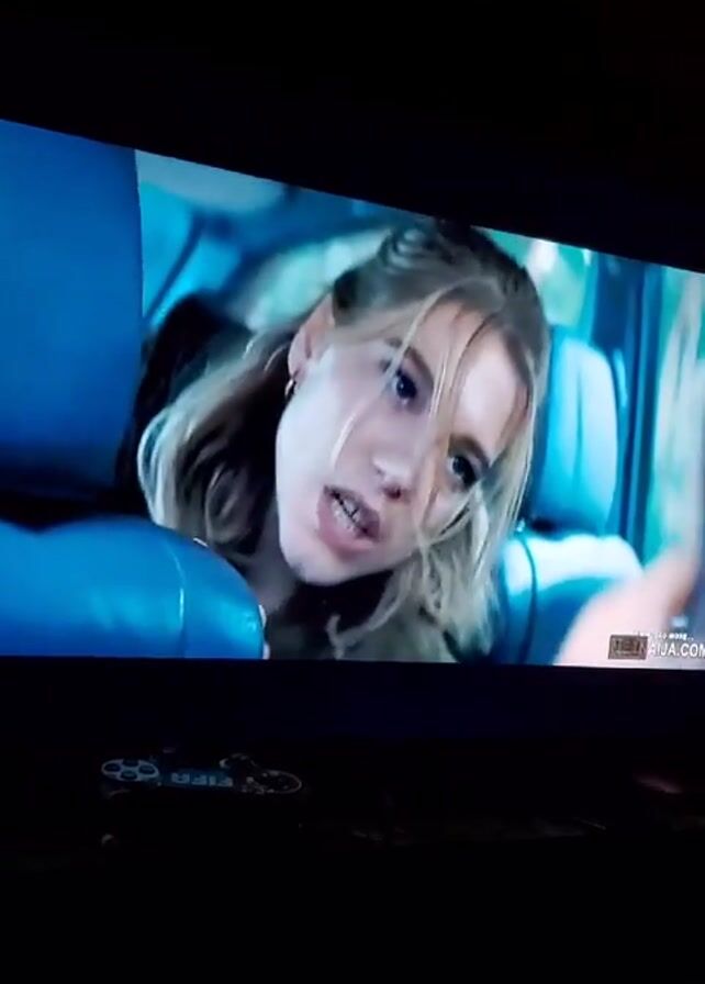 man and a woman in a car, then the car driving up to a house. The car is a silver Toyota Land Cruiser Prado. The house is a small, yellow cabin with a gray roof. There is another car parked behind the Toyota Land Cruiser Prado. There is a video game controller in the foreground.
