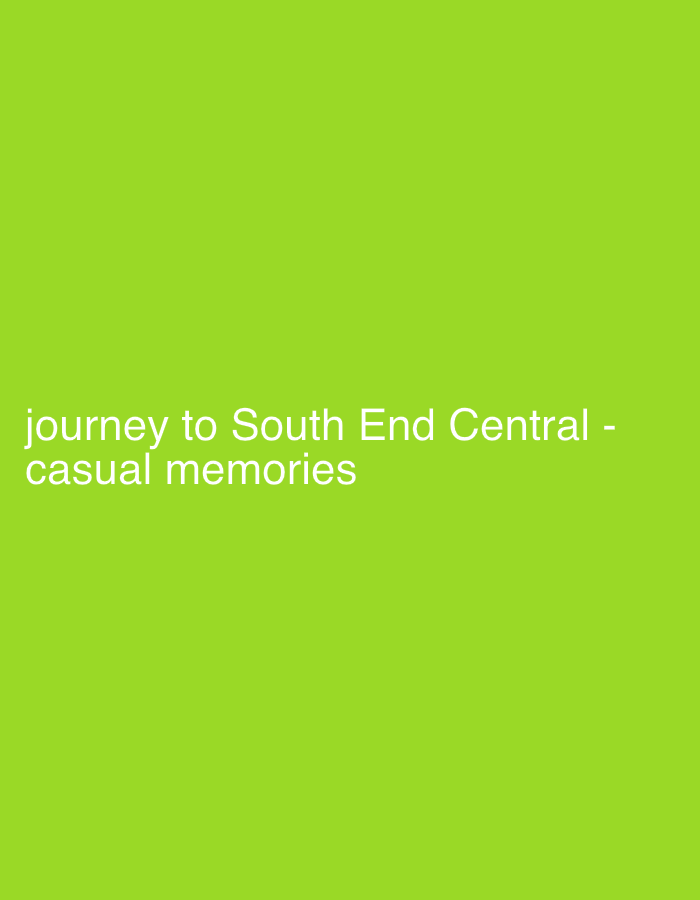 The image is a solid lime green background with the text "journey to South End Central - casual memories" in white font centered on the bottom of the image