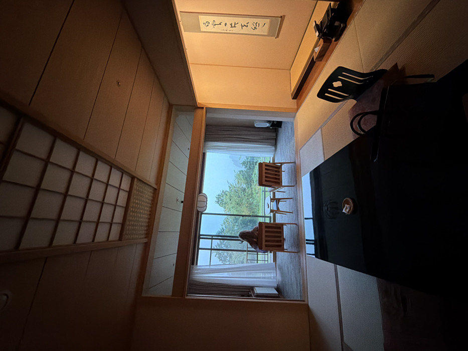 This image depicts the interior of a Japanese-style room, likely a ryokan, in Hakone, Japan