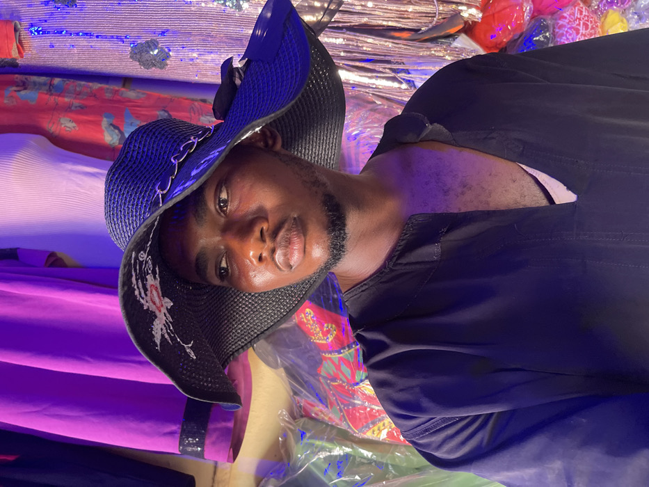 An adult male is photographed in a retail environment in Samaru, Nigeria
