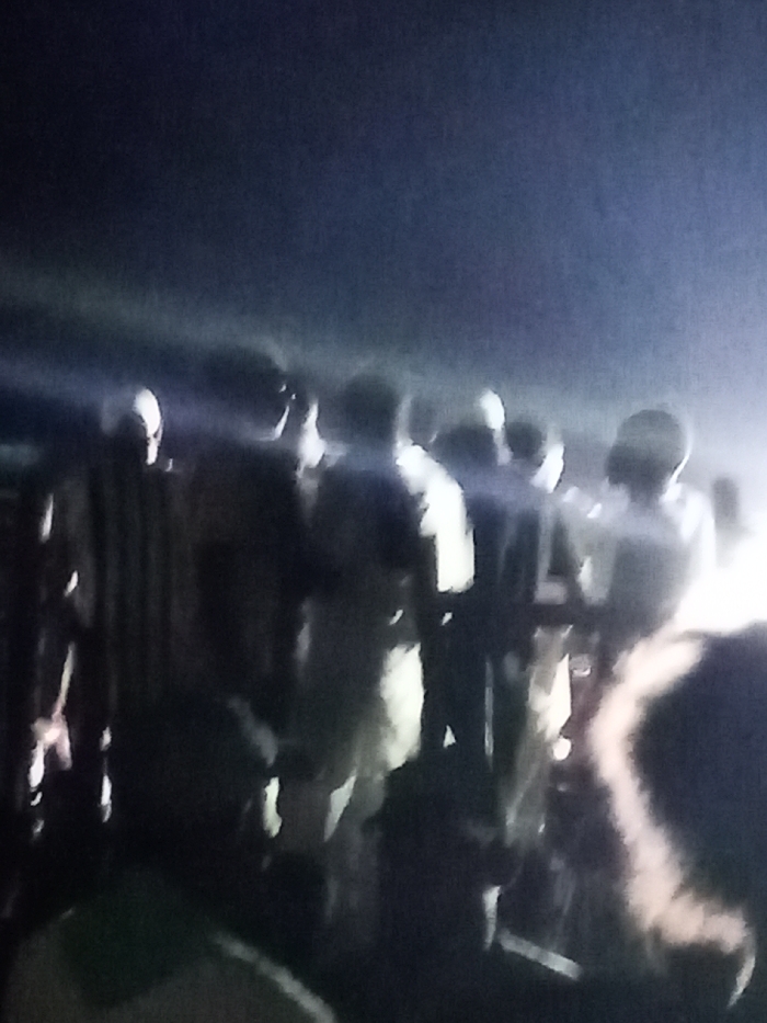 The image displays an outdoor scene at night or under very low light conditions in Adonkolo, Nigeria