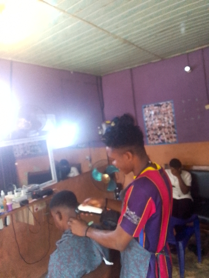 The image depicts an indoor scene within an establishment, likely a barber shop, located in Unknown, Unknown