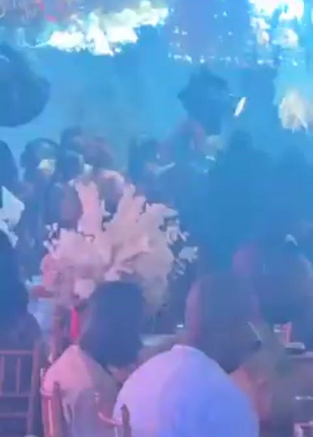 The video appears to be taken at a festive event, possibly a wedding or large party