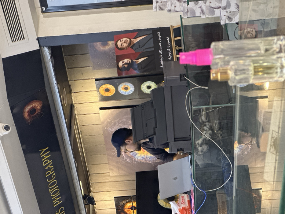- "An interior view depicts a photography shop in Barza Municipality, Syria, identified by a black overhead sign displaying "IRIS PHOTOGRAPHY" in yellow text alongside a stylized eye graphic" by FM-shBps1, licensed under CC BY 4.0