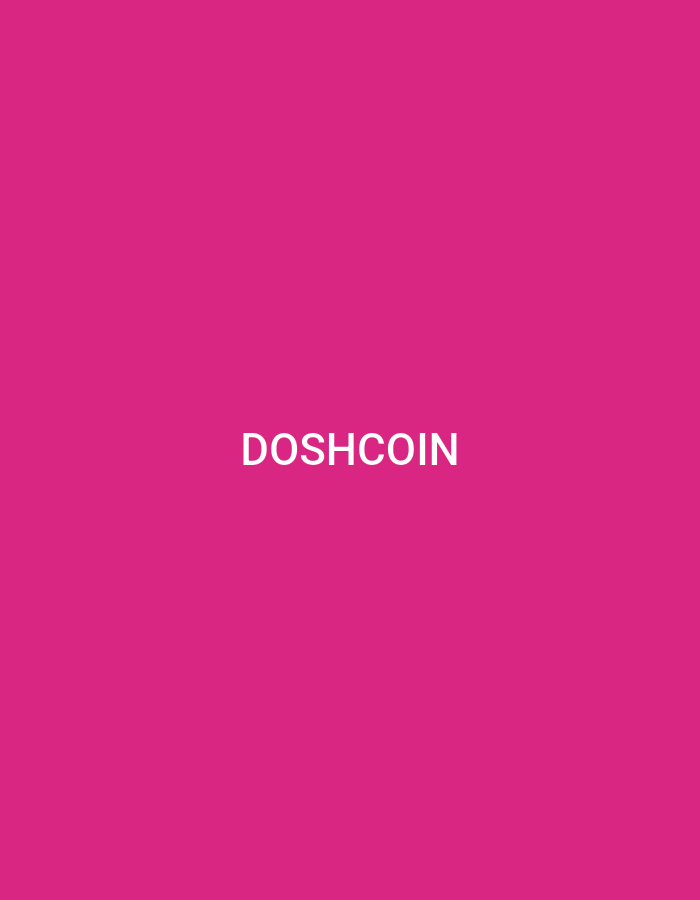 The scene, located in Khujand, Tajikistan, displays a solid hot pink background. Centered horizontally and vertically on this background is the word "DOSHCOIN" rendered in white, uppercase, sans-serif typography. No other subjects, objects, people, actions, or environmental details are visible within the frame.