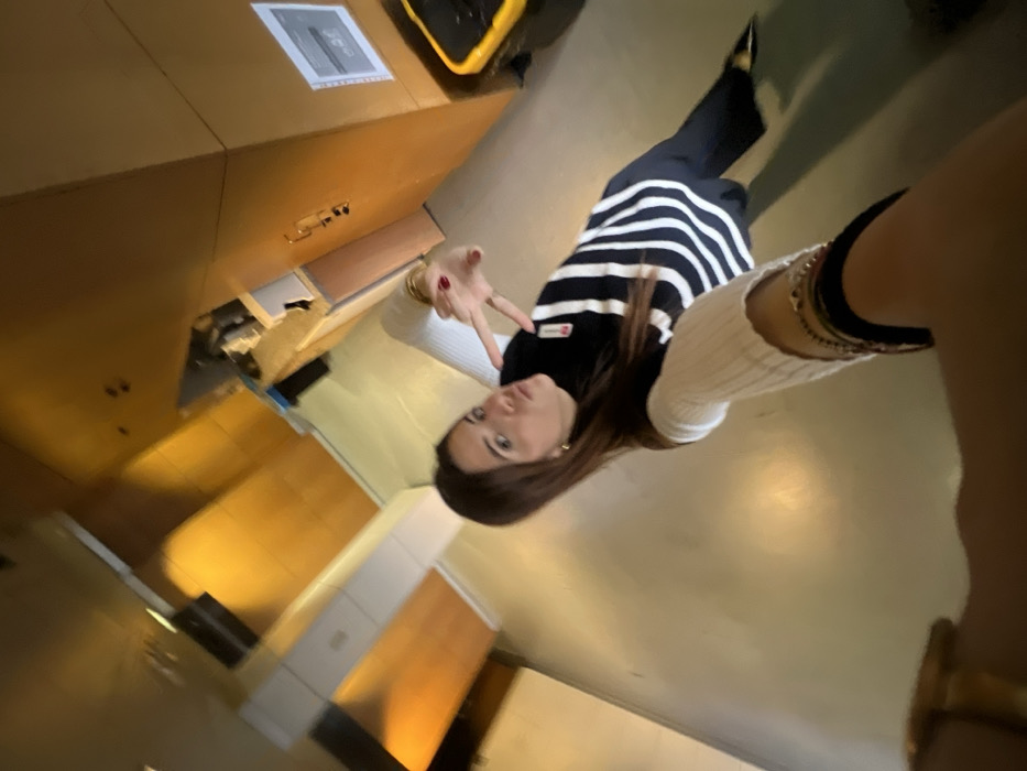 The image depicts an indoor scene, likely a hallway or commercial space, in the city of Unknown, Unknown, captured via a low-angle, rotated selfie