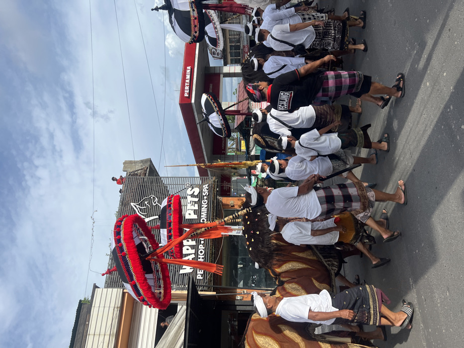 - "A procession of approximately 15-20 individuals, primarily adult males and several boys, is observed moving from left to right on an asphalt road in Peliatan, Indonesia" by FM-kzzMn1, licensed under CC BY 4.0