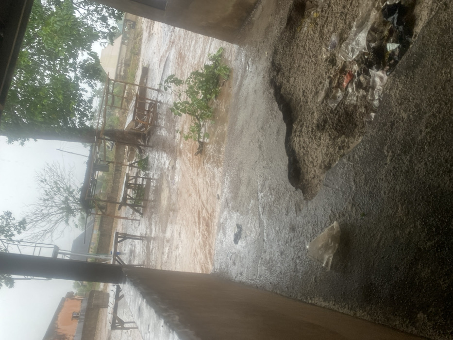 Torrential rain floods the outdoor area