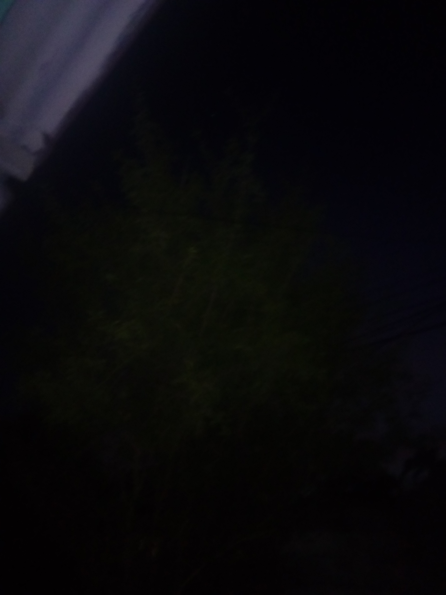 The image depicts a dark, outdoor scene at night in Juan Griego, Venezuela. There appears to be vegetation, possibly a tree or bushes, in the center of the frame. In the upper left corner, a portion of a structure is visible, possibly a building or roof. The rest of the image is very dark, making it difficult to discern further details about the environment or any other subjects.