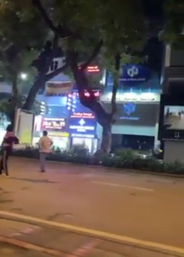 The video appears to be shot from a moving vehicle at night in an urban environment