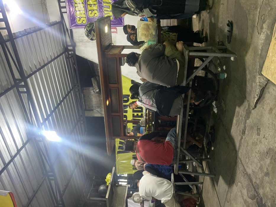 - "The image depicts a nighttime scene at a street food establishment in Kecamatan Pati, Indonesia, operating under a corrugated metal roof structure supported by dark metal trusses" by FM-QaAD42, licensed under CC BY 4.0