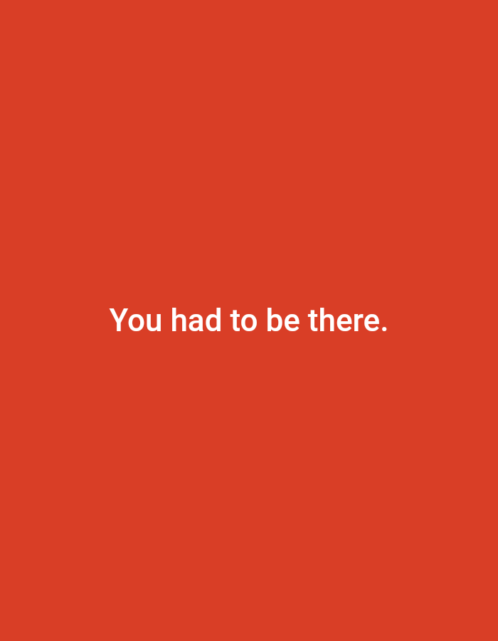 - "The image is a solid red background with the white text "You had to be there" by FM-rZ4cp1, licensed under CC BY 4.0