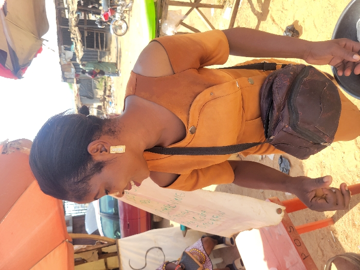 The image depicts an outdoor market or street vending scene in Suleja, Nigeria