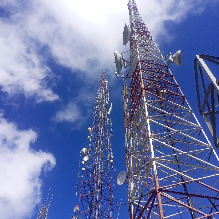 - "The image displays a low-angle, upward view of multiple telecommunications towers in San José de Galipán, Venezuela" by FM-iATrF2, licensed under CC BY 4.0