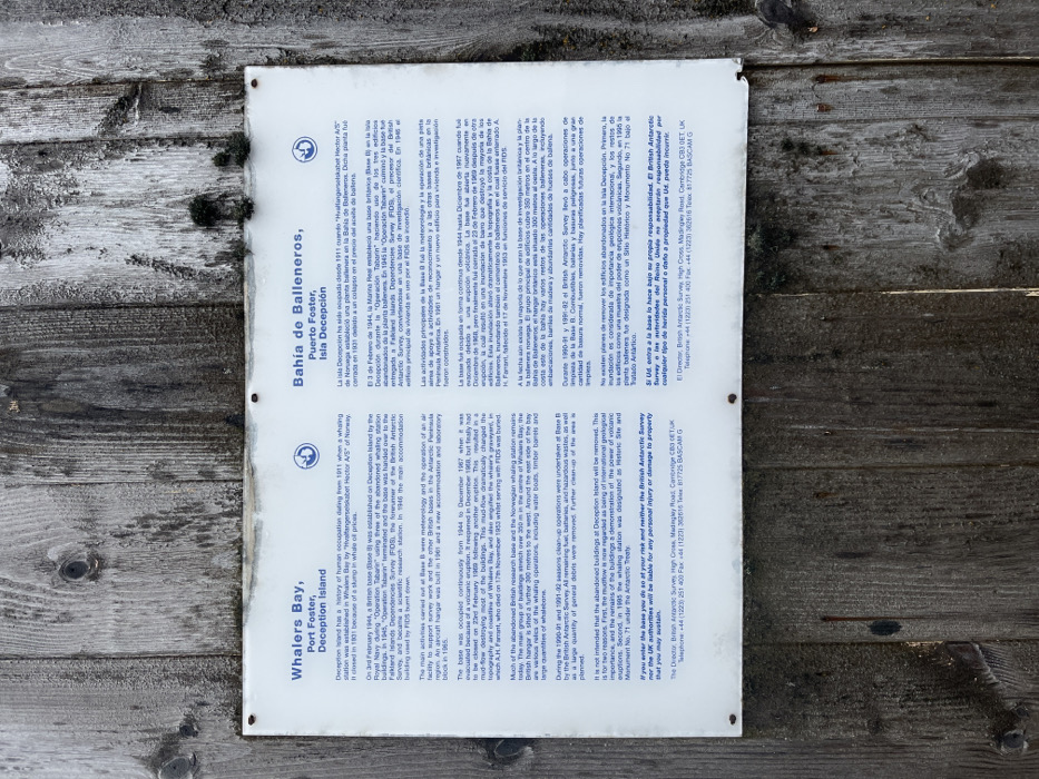 - "The informational sign details the history of Whalers Bay, Port Foster, and Deception Island" by FM-SiGDg2, licensed under CC BY 4.0