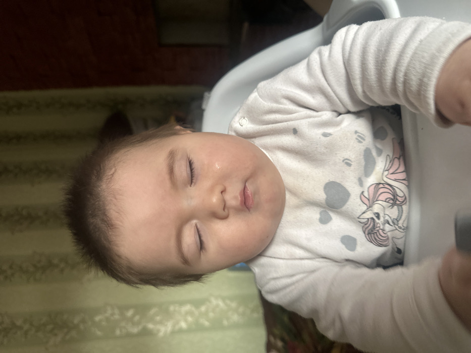 - "An infant is depicted in a close-up, front-facing portrait, seated in a light-colored high chair within a room in Yangiiul, Uzbekistan" by FM-ciE9C3, licensed under CC BY 4.0