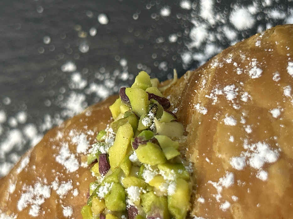 - "This close-up, high-angle image depicts a single Italian pastry, likely a sfogliatella or cannolo, situated in Como, Italy" by FM-fbqYv1, licensed under CC BY 4.0
