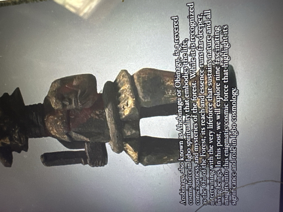 - "The image displays a carved wooden statue, identified by accompanying text as "Arobinagu," "Ahobinagu," or "Obinagu," a revered cosmic force in Igbo spirituality, culturally associated with Nnobi, Nigeria" by FM-hlFko1, licensed under CC BY 4.0