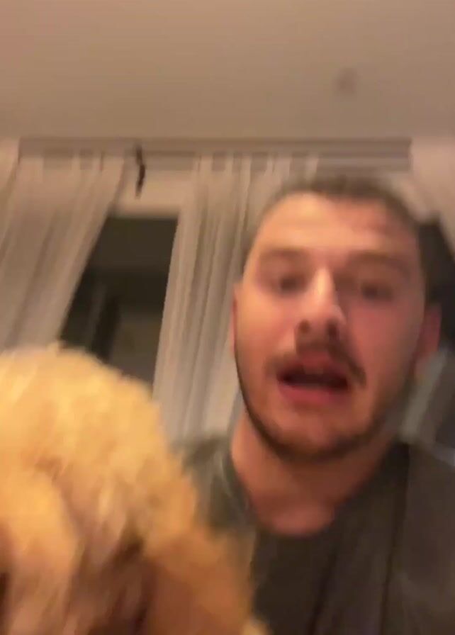 - "A man with short brown hair and a slight beard is holding a medium-sized, golden-brown, curly-haired dog" by FM-EXOi83, licensed under CC BY 4.0