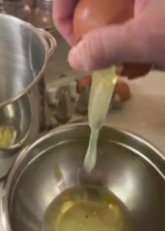 - "A hand cracks an egg over a stainless steel bowl" by FM-AptXl1, licensed under CC BY 4.0