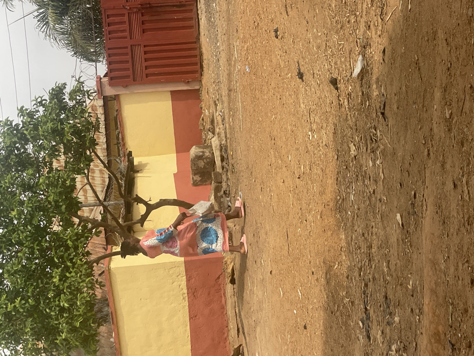 An adult female is observed walking from left to right across an unpaved, reddish-brown dirt surface in Akwanga, Nigeria