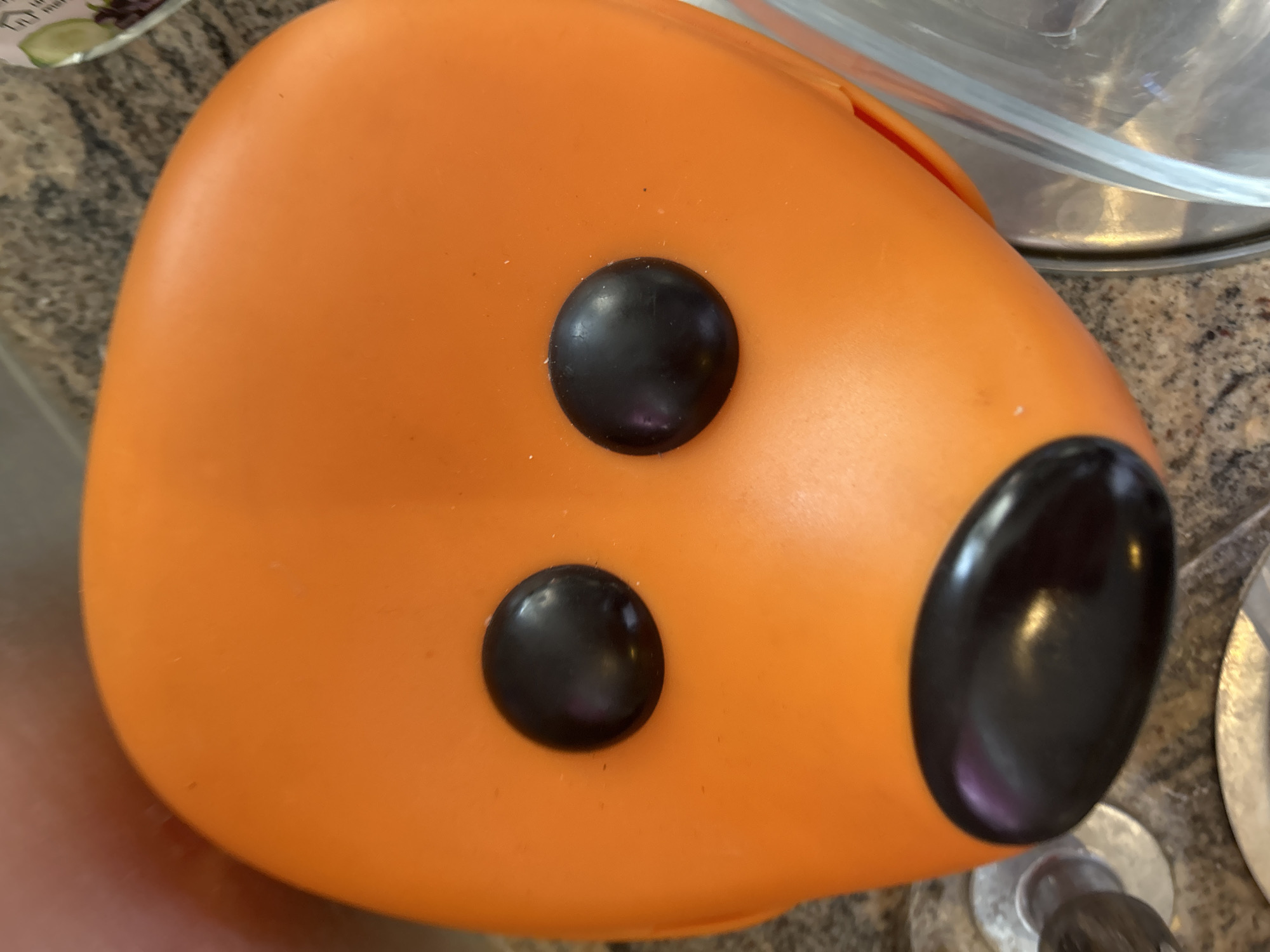 - "The image displays an orange, plastic object resembling an anthropomorphic animal head, situated in what appears to be a kitchen environment in Gauting, Germany" by FM-naxav2, licensed under CC BY 4.0