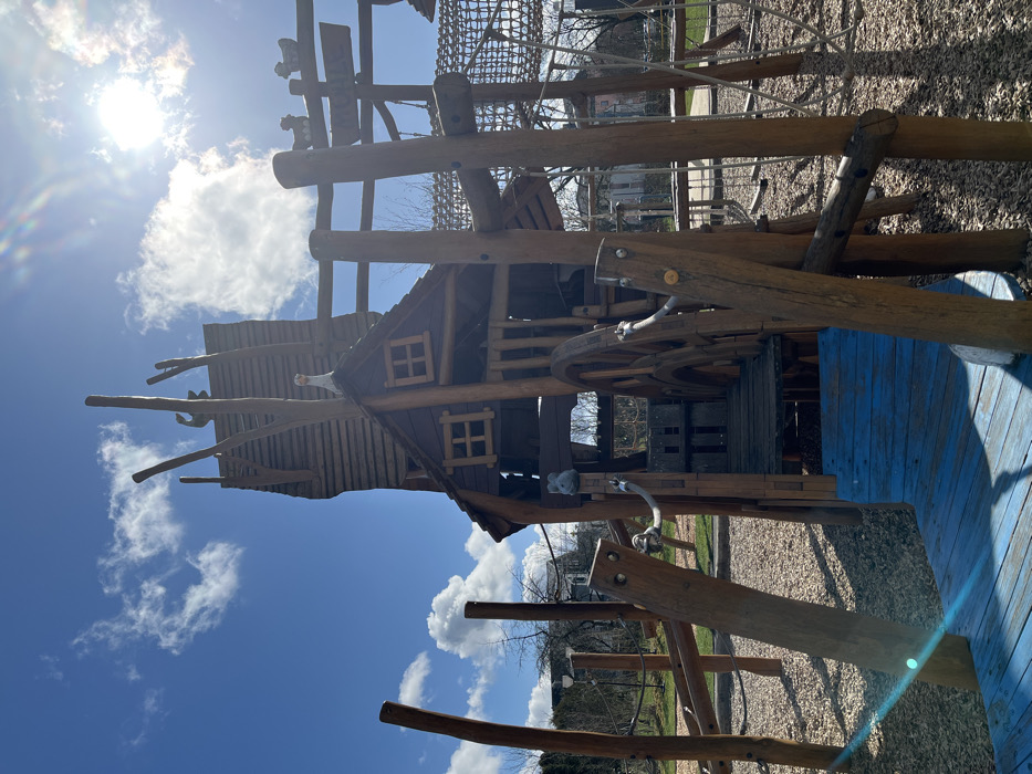 - "The image displays a multi-level wooden playground structure located in Mondercange, Luxembourg, under a bright blue sky with scattered white clouds" by FM-CPrh43, licensed under CC BY 4.0