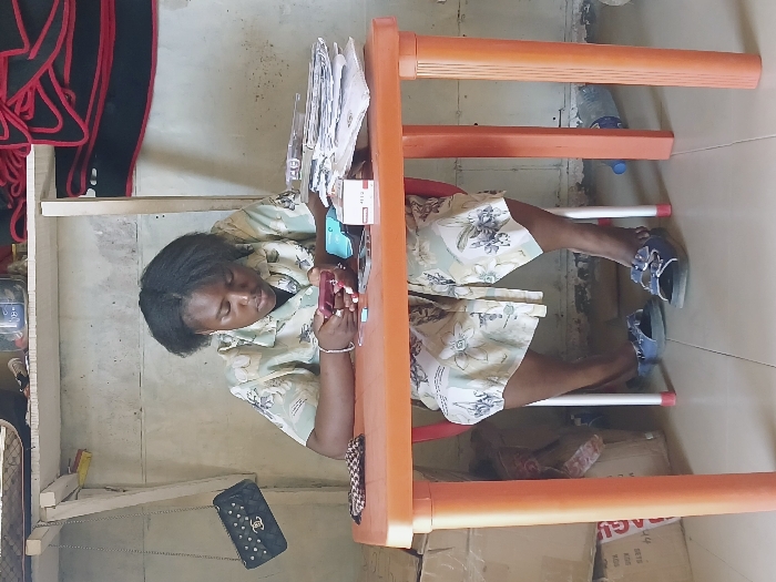 A single individual is seated at an orange plastic table in an indoor setting within Gweru, Zimbabwe