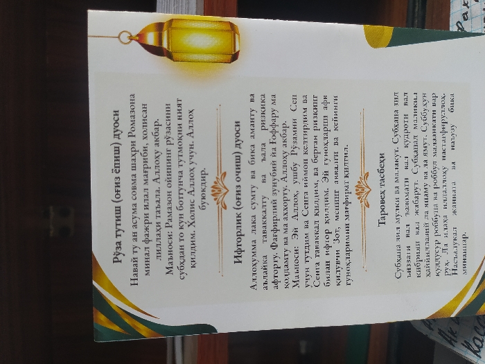 text in a language that appears to be Uzbek, likely related to Islamic prayers and practices