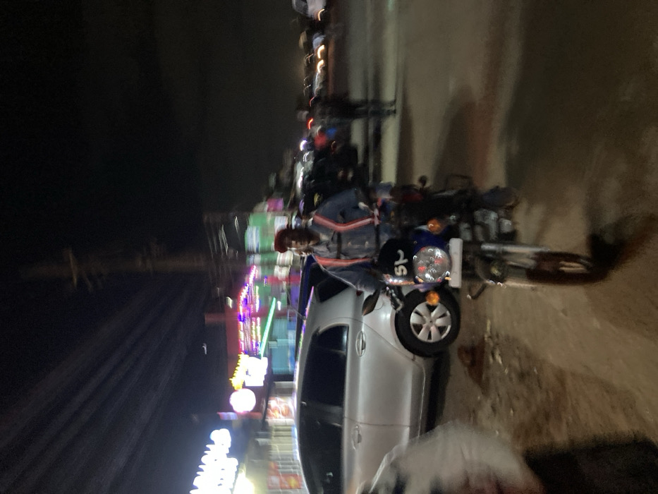 - "At night, a silver car is parked on the street near a row of brightly lit buildings with signs" by FM-74sbw2, licensed under CC BY 4.0
