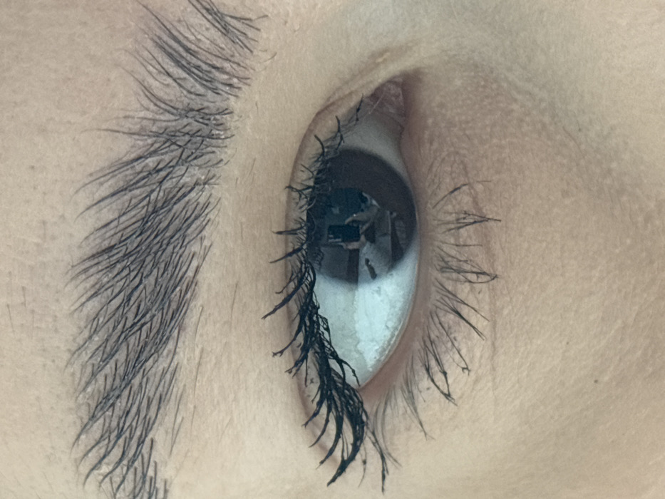 - "A close-up image displays a human eye, showing a dark brown iris, a white sclera with subtle vascularization, and eyelashes coated with black mascara, some appearing clumpy" by FM-mFtzC3, licensed under CC BY 4.0