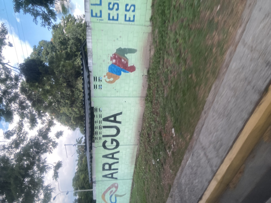 A daylight street-level view captures a painted cinder block wall in Maracay, Venezuela