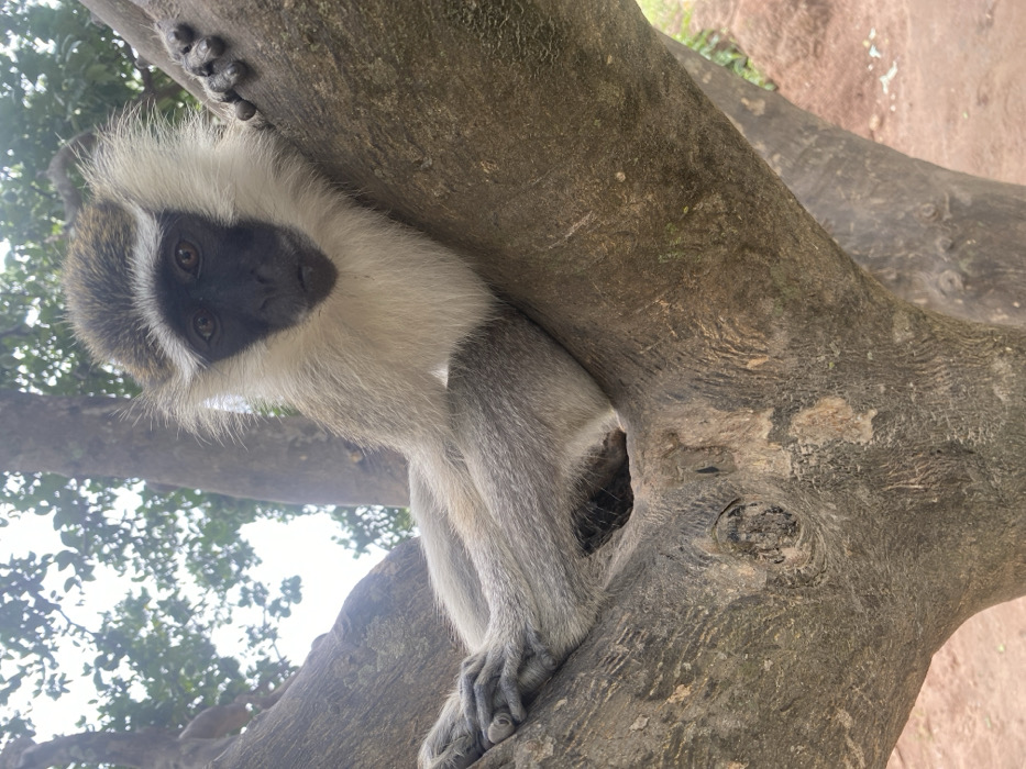 - "A vervet monkey (Chlorocebus pygerythrus) is observed resting in the crook of a large, mature tree branch in Zaki Biyem, Nigeria" by FM-Ff9pr2, licensed under CC BY 4.0