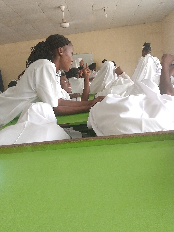 The image captures an indoor classroom or lecture hall located in Keffi, Nigeria
