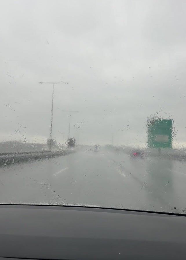 interior viewpoint from a car driving on a highway in heavy rain