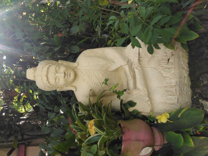 - "A beige statue, depicting a seated figure resembling a Buddha or Bodhisattva, is centrally situated within a densely vegetated outdoor garden in Tilburg, Netherlands" by FM-f7oWW2, licensed under CC BY 4.0