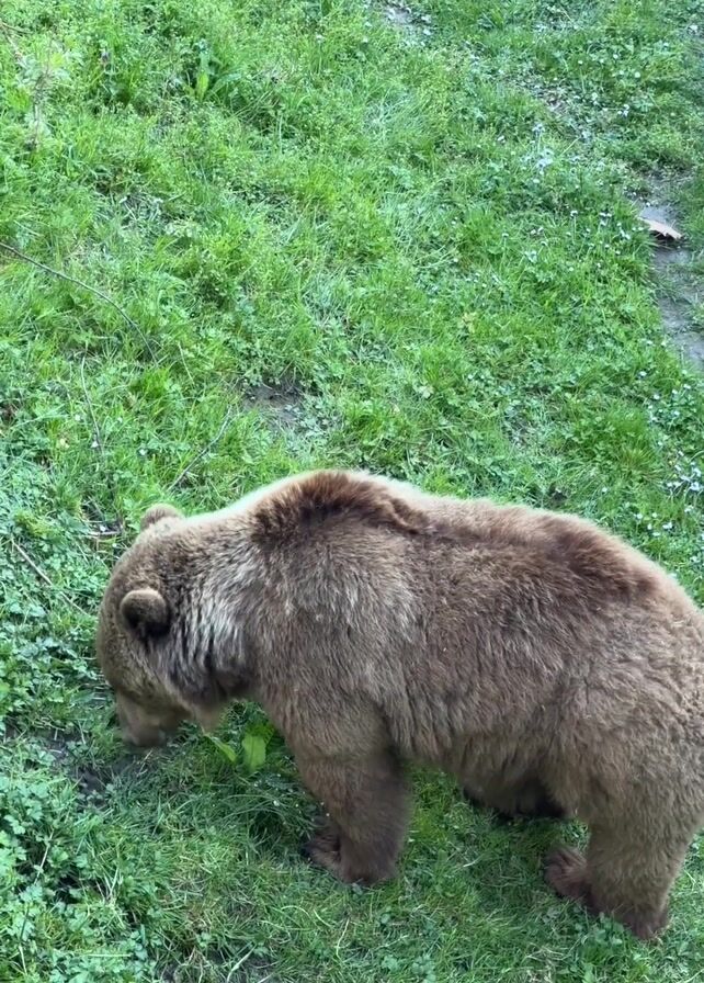 brown bear foraging in a grassy area