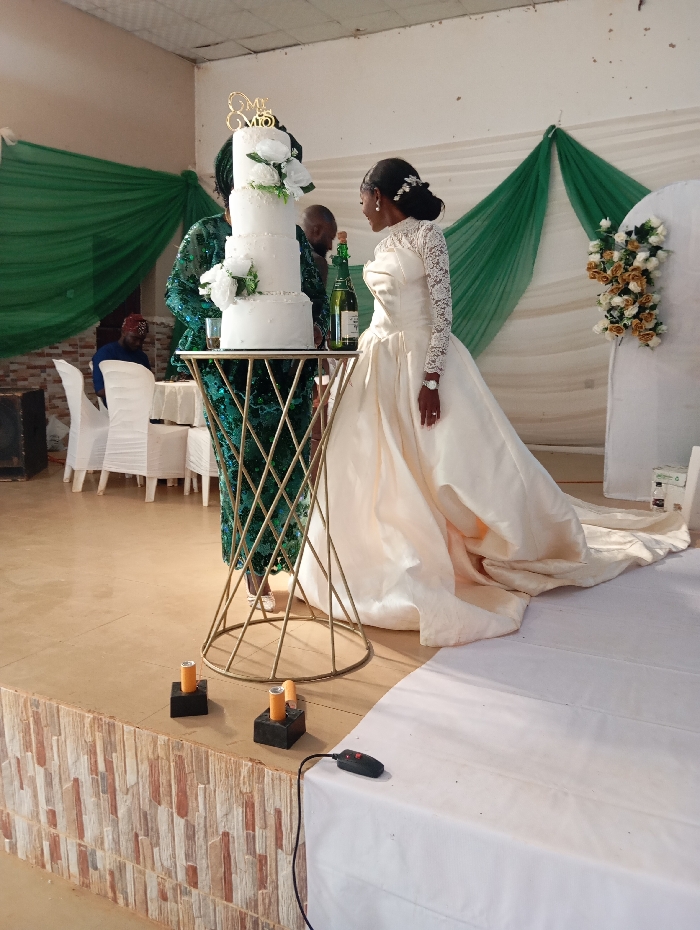 An indoor wedding reception is depicted in Barakin Gangare, Nigeria