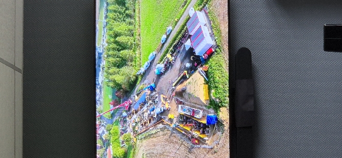 - "An aerial view of a large civil engineering construction site in Carvin, France, is displayed on a television screen" by FM-Grq9g2, licensed under CC BY 4.0