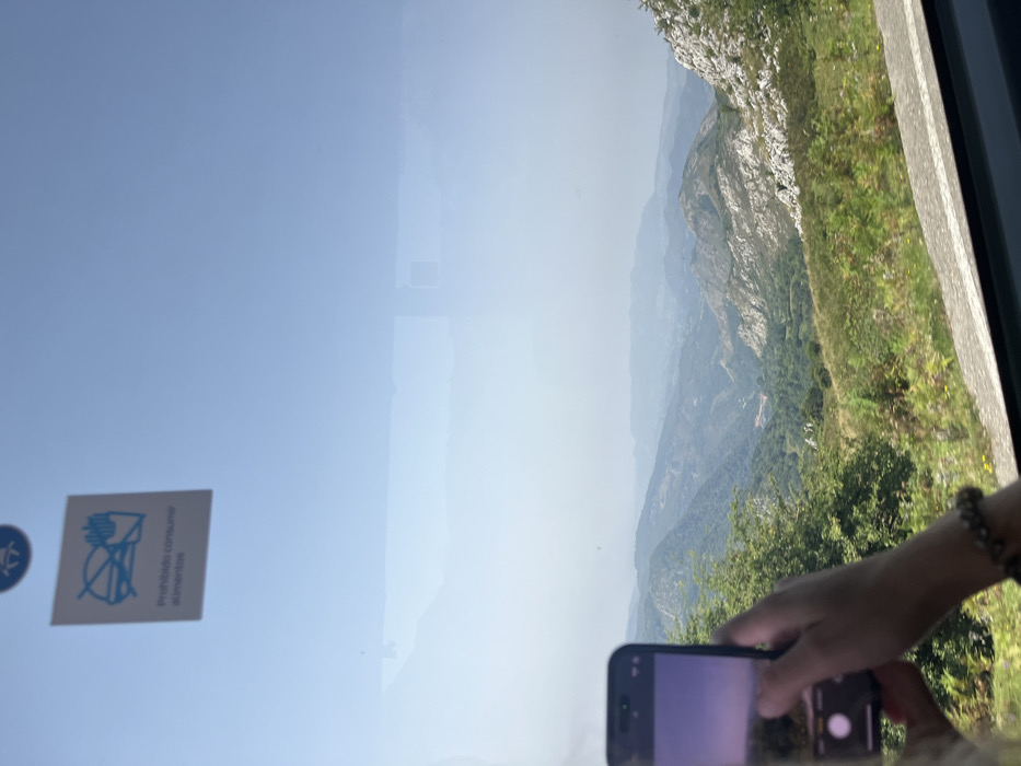 - "The image depicts a clear daytime view from inside a public transport vehicle, likely a bus, overlooking a mountainous landscape" by FM-l2qUu2, licensed under CC BY 4.0