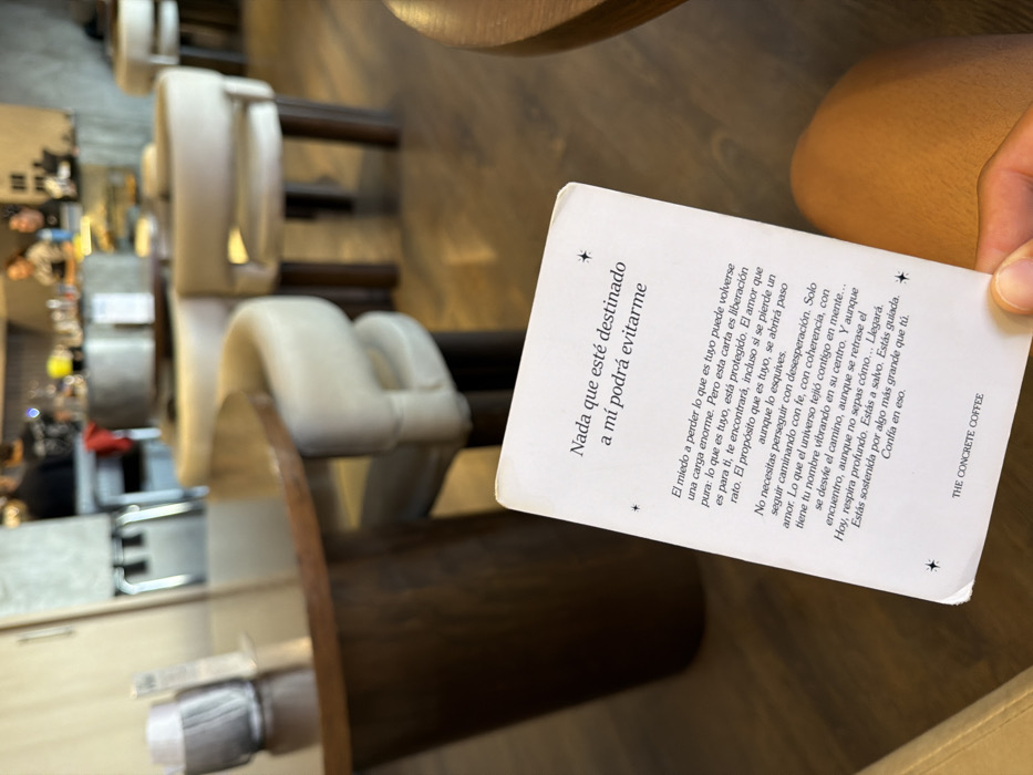 - "The image features a card with a Spanish affirmation from The Concrete Coffee" by FM-2d4mA3, licensed under CC BY 4.0