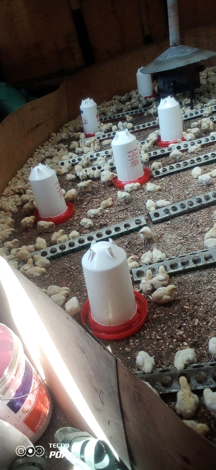 The image displays an indoor poultry brooding facility located in Unknown, Unknown