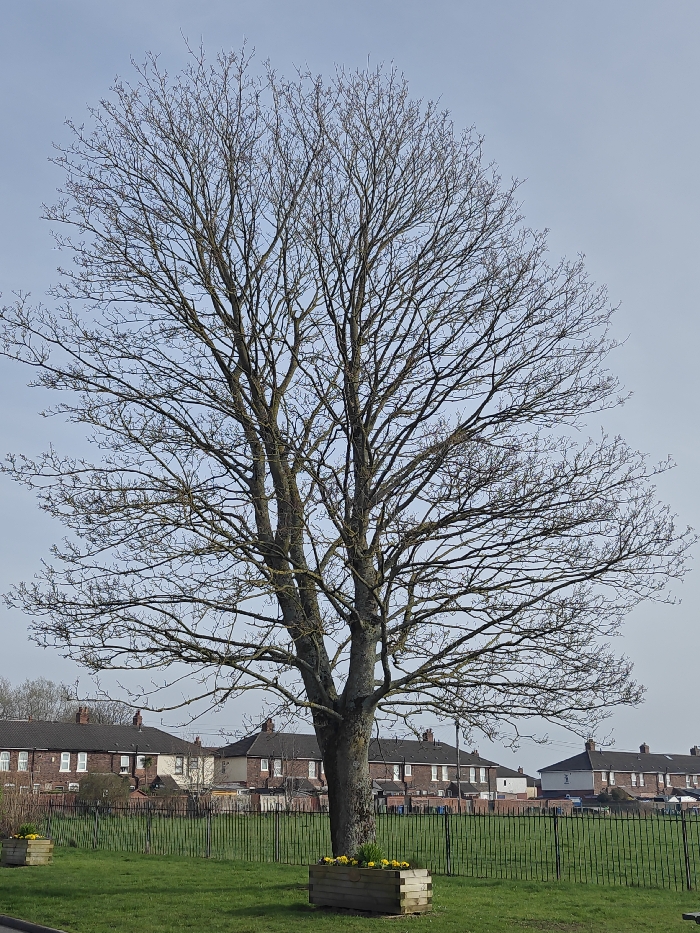 - "The image displays a large, leafless deciduous tree centered within a green, grassy area, consistent with a public park or common in a residential part of Wigan, United Kingdom" by FM-21ApN2, licensed under CC BY 4.0
