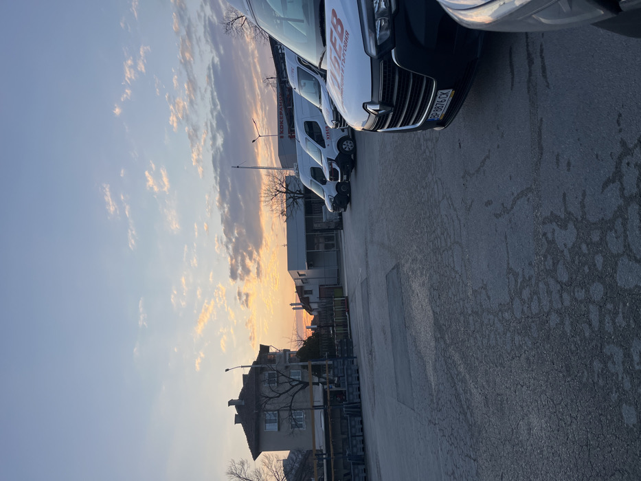 - "The scene depicts an outdoor commercial yard or parking lot in Vratsa, Bulgaria, observed during either sunrise or sunset, indicated by the low-angle, warm light and the orange, pink, and light blue hues in the sky" by FM-yTBMn2, licensed under CC BY 4.0
