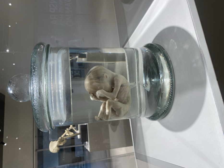 - "A preserved human fetus is displayed within a clear, lidded glass jar, filled with a transparent liquid" by FM-33abC2, licensed under CC BY 4.0