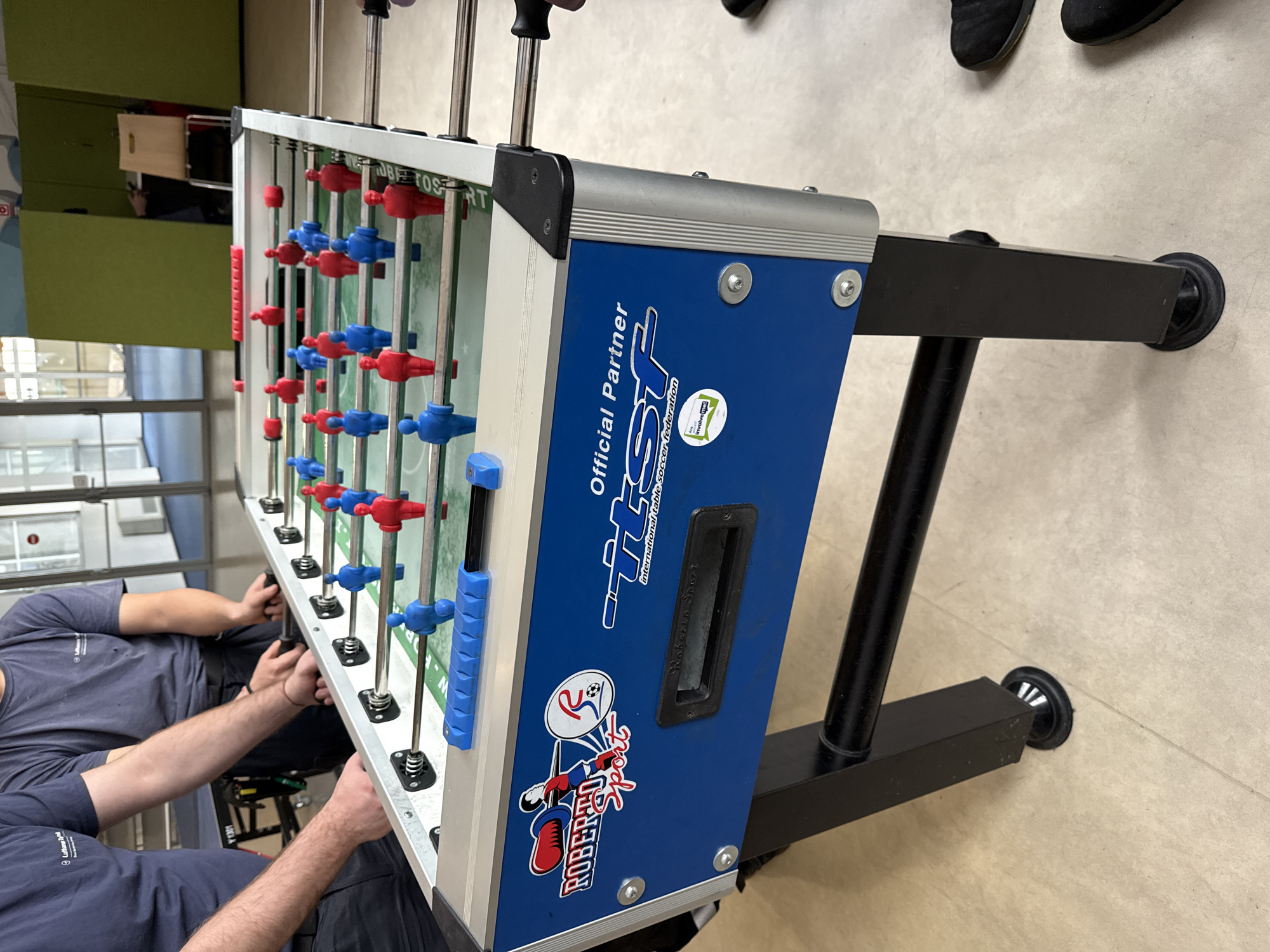 - "Roberto Sport foosball table with red and blue players" by FM-OMISw1, licensed under CC BY 4.0