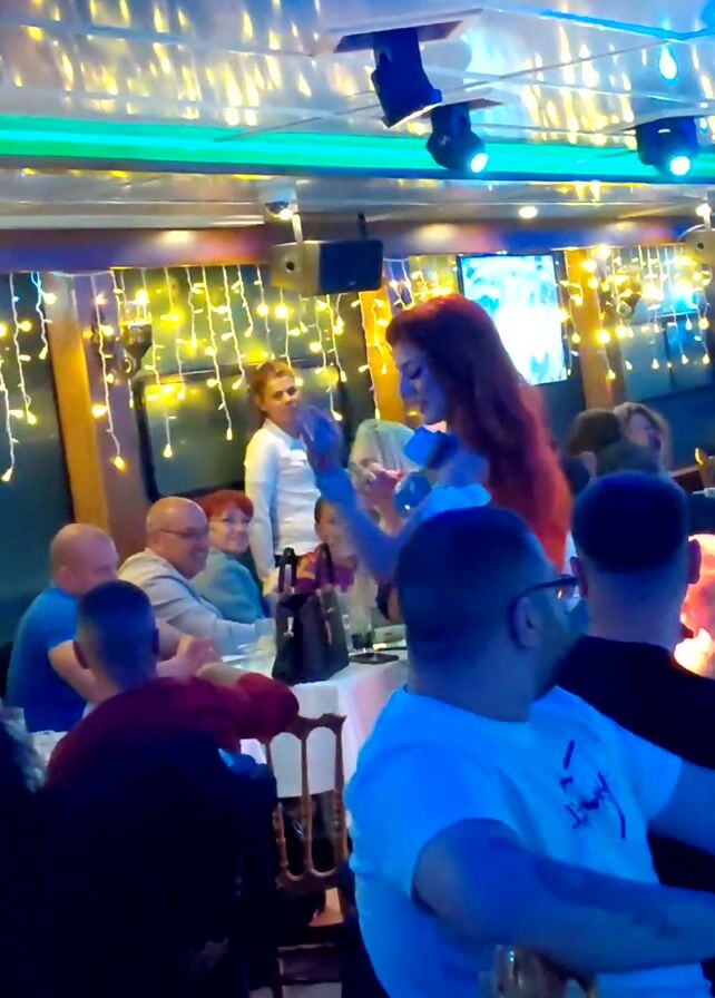 belly dancer performing in a restaurant