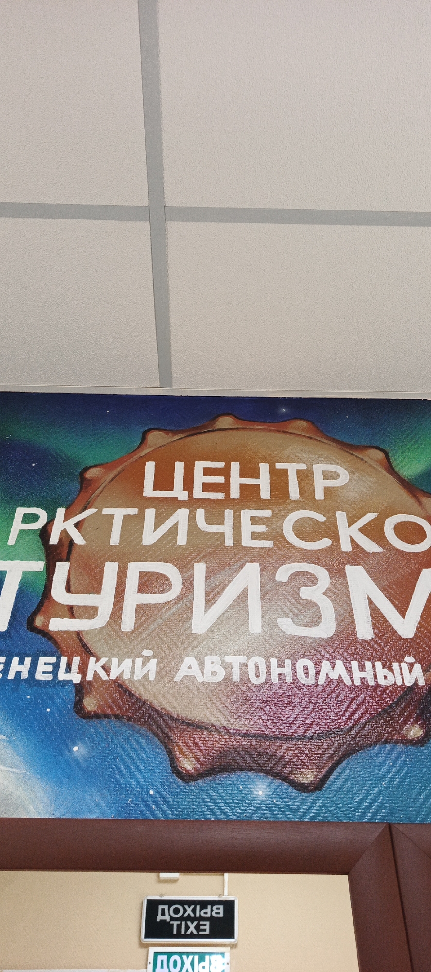 sign that reads "Центр Арктического Туризма, Ненецкий Автономный Округ